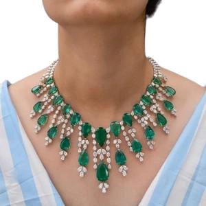 206.71 TCW Zambian Emerald & SI/H Diamond Wedding Necklace in 14K Solid White Gold