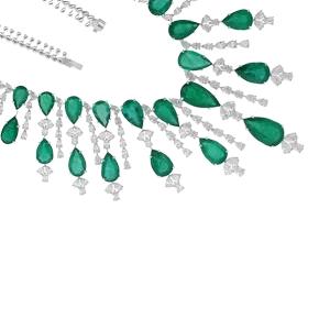 Total Carat Weight: 206.71 carats (emeralds + diamonds)