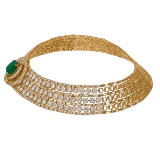 ✨ Authentic natural Zambian emeralds ✨ SI/H clarity natural diamonds for superior brilliance ✨ Expertly handcrafted in 18K yellow gold ✨ Statement choker design for an opulent look ✨ Perfect for luxury gifting and special occasions