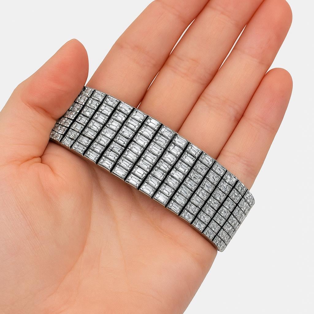 Indulge in pure sophistication with this breathtaking 42.50 Carat Emerald Cut Diamond Bracelet, meticulously handcrafted in solid 18K white gold. This extraordinary piece showcases the timeless beauty and precision of emerald-cut natural diamonds, each carefully selected for exceptional brilliance, symmetry, and clarity.