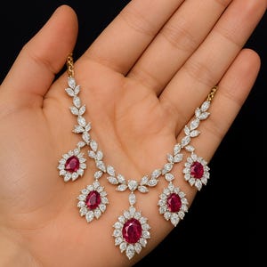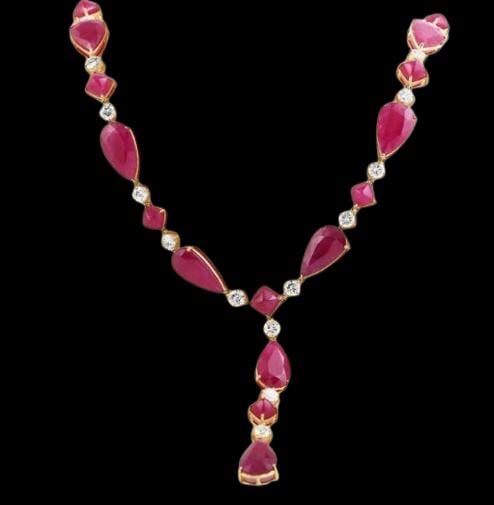 This ruby and diamond necklace radiates sophistication and fiery elegance — a masterpiece that celebrates life’s most special moments.
