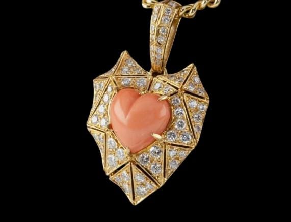 ✨ Why You'll Love It: This stunning coral heart pendant is not just a statement of luxury — it’s a piece that tells a story of passion and artistry. The glowing coral heart, embraced by a diamond-studded sunburst frame, captures both warmth and light, making it a piece that will be admired for generations.