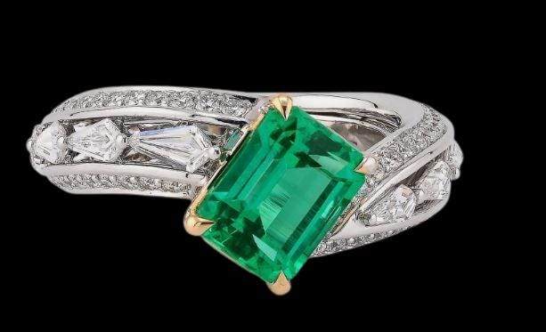 Elevate your elegance with this Fine Jewelry 2.24 Carat Colombian Emerald and Diamond Ring in 18K White Gold, a timeless masterpiece that embodies sophistication, rarity, and grace. Handcrafted by expert artisans, this luxurious ring features a vivid emerald-cut natural Colombian emerald, renowned for its deep green hue and mesmerizing clarity — the hallmark of the world’s most coveted emeralds.