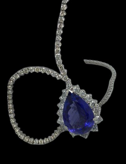Immerse yourself in luxury with this 18K Gold Necklace featuring a 16.95 Carat Natural Tanzanite and 6.82 Carats of Diamonds, an extraordinary piece of handcrafted fine jewelry that radiates elegance and sophistication. This masterpiece highlights a vivid, GIA-certified Tanzanite gemstone, renowned for its captivating violet-blue hue — a color found only in the rare mines of Tanzania.